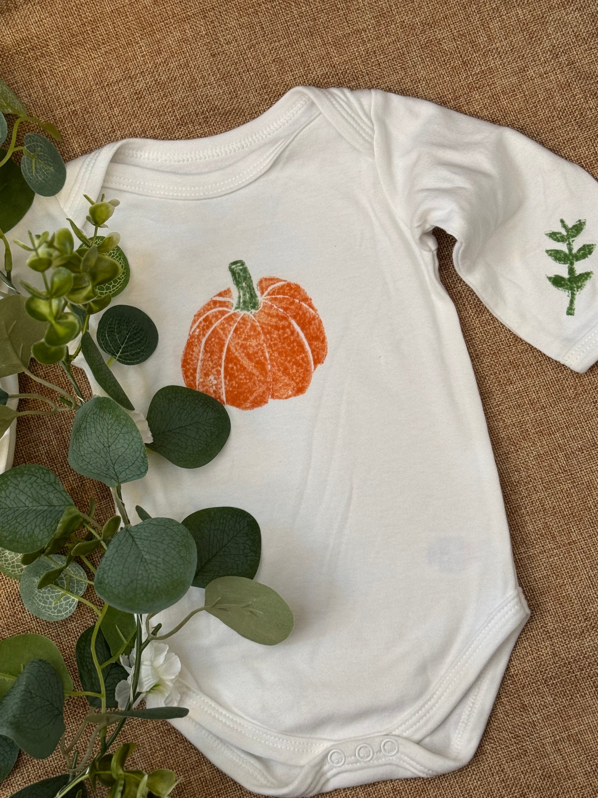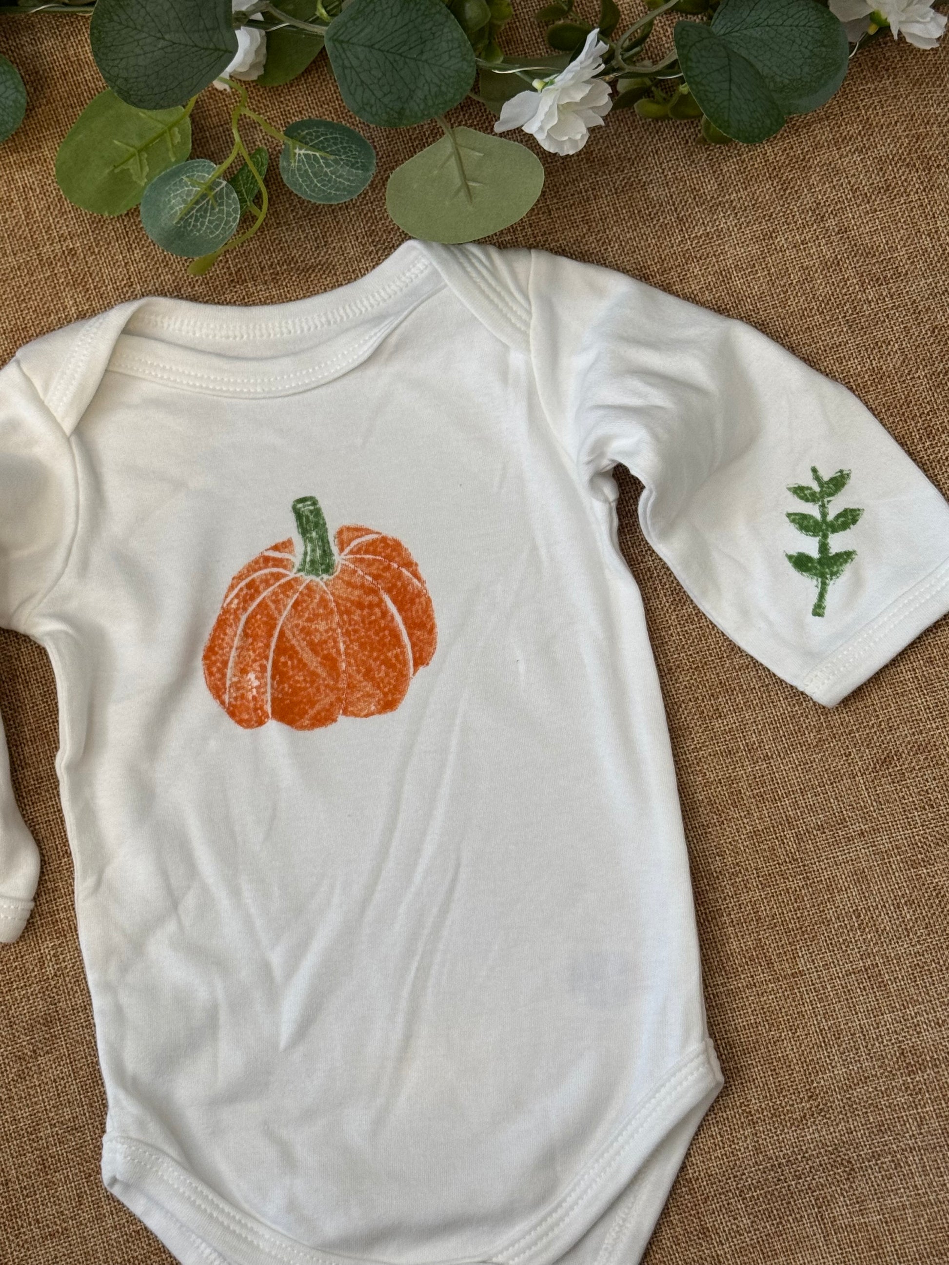 Available 100% organic baby grows printed with pumpkin design. Perfect for Autumn/ Halloween’